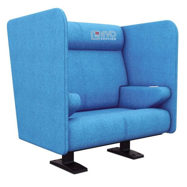 The EVO1502A double cinema chair (also known as a sweetbox seat) is typically placed in the last row of movie theaters, providing a private and comfortable space for couples, families, or friends when enjoying films at the cinema.